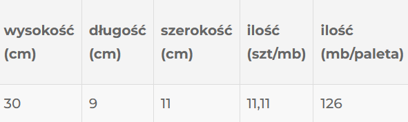 TABELA WYMIARÓW